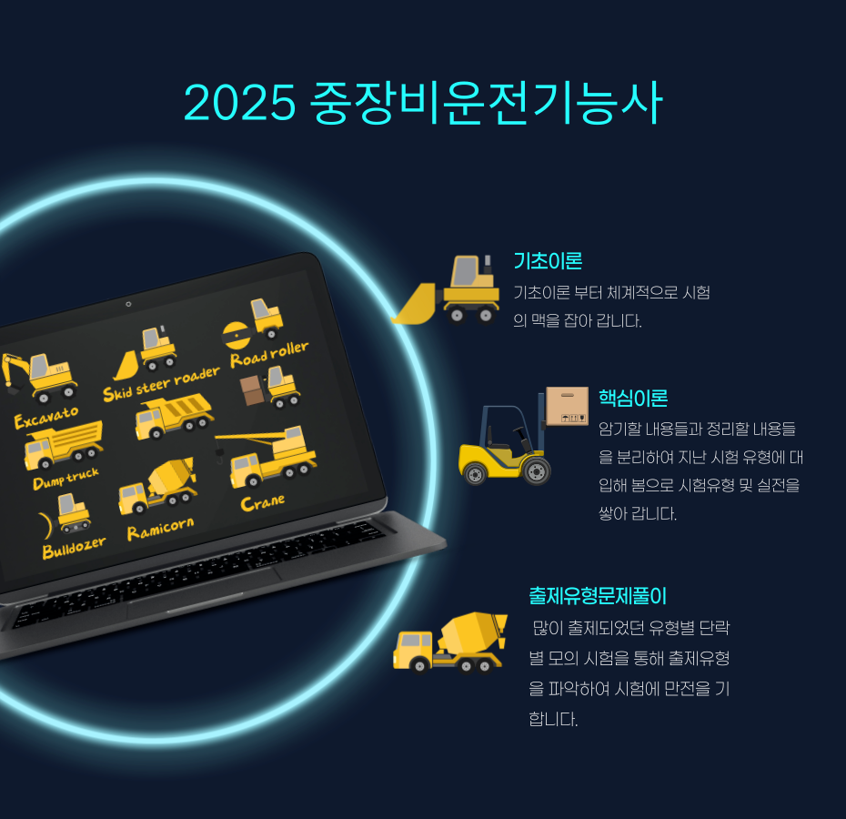 기출문제 3회독 + 장비 운전 영상 반복 시청 + 실습 필수 |